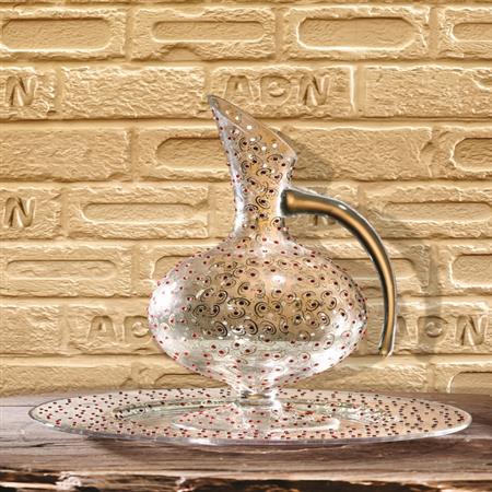 Cam sürahi ve cam supla tabak… Kendi özel hediye kutularında... Özel taşlarla ve altın varakla dekorlanmış, tamamı 'el işi' süslemeli harika bir set…
