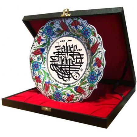 »Deri kaplı, ahşap, iç kısmı kadife döşeli plaket tarzı kutusu ile gönderilir.