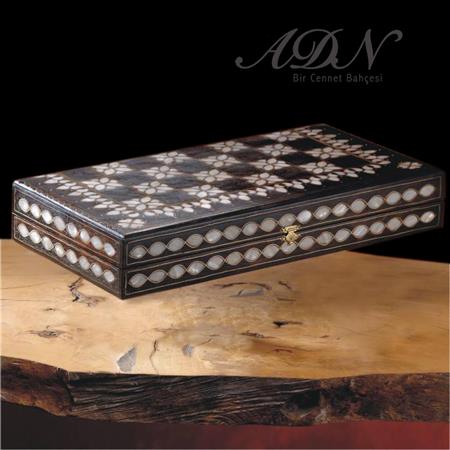 - El yapımı, masif ceviz tavla - Sedef kakmalı * Sedefler, Kızıldeniz sedefidir.